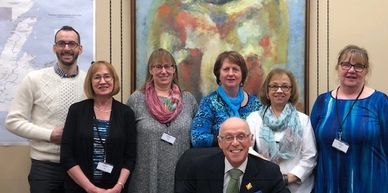 Pictured (left to right): Christopher Stamp, Dept. of Health and Community Services, Elaine Kennedy, LANL, Fran Mowbray, LANL, Erin Pennell, LANL, seated: The Honourable Dr. John Haggie, Minister of Health and Community Services, Christine Burke, LANL, Angela Barnes, LANL